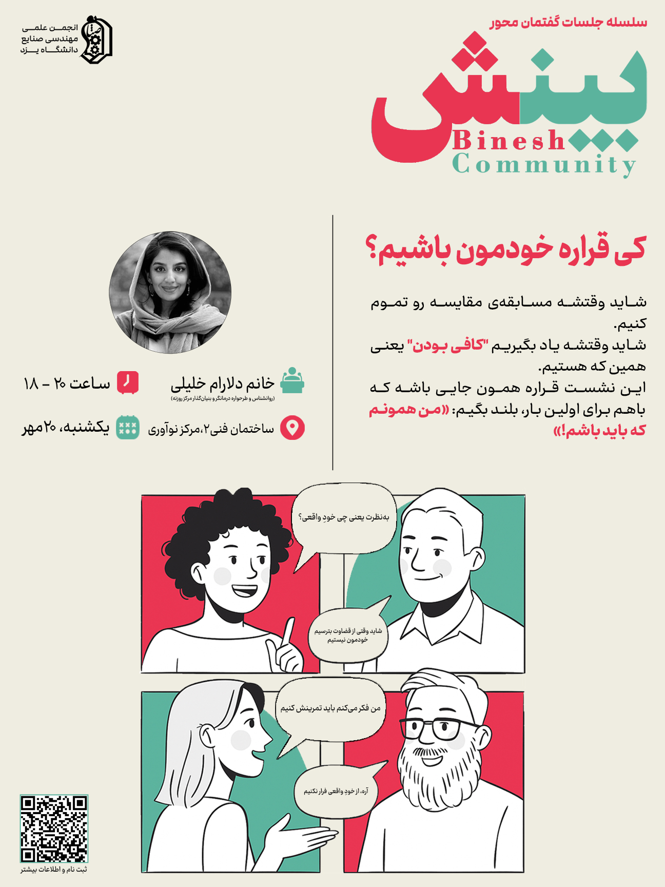 شايد وقتشه مسابقه ی مقايسه رو تموم كنيم. شايد وقتشه ياد بگيريم “كافى بودن” يعنى همين كه هستيم. اين نشست قراره همون جايى باشه كه باهم براى اولين بار، بلند بگيم: «من همونم كه بايد باشم!»